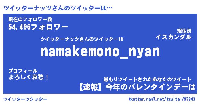 | 女子向けラノベタイトル風あだ名 | 『誰かこのツイッターナッツを説明してください! ~契約から始まるウェディング~』 |