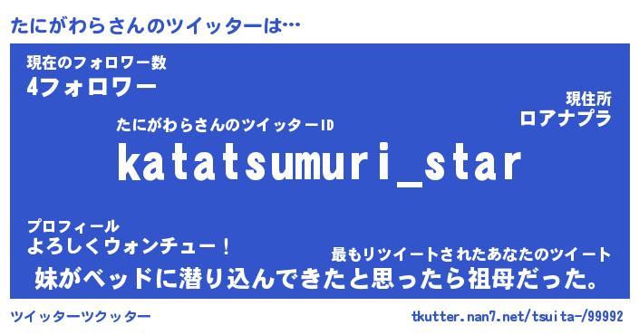 | ファンタジー風あだ名 | 『タニフェル』『エターナルタニガワラー』 |