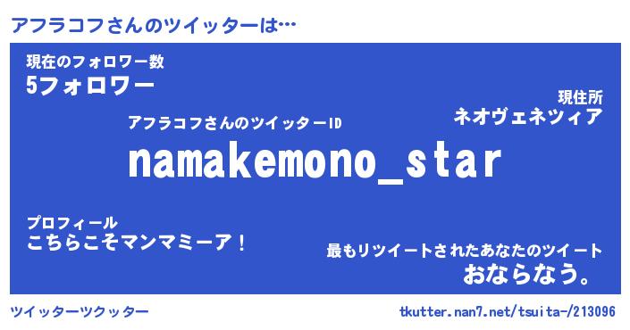 | 男性向けラノベタイトル風あだ名 | 『アフラコフアートオンライン』 |