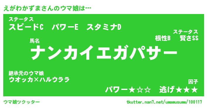 | 意味不明あだ名 | 『ペロリンえがわかずま』 |