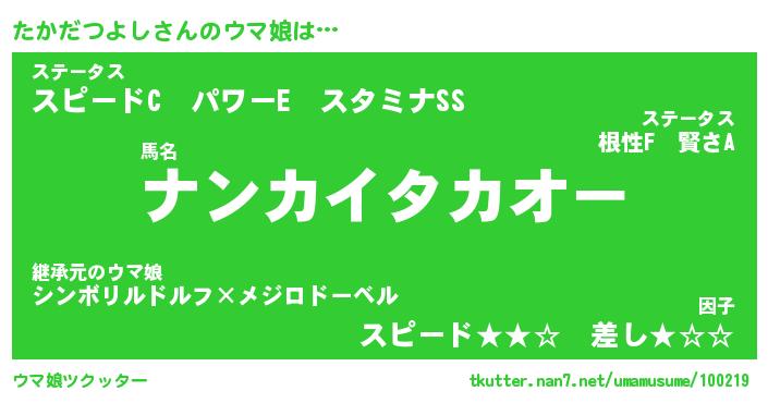 | 男性向けラノベタイトル風あだ名 | 『たかだつよしの憂鬱』 |