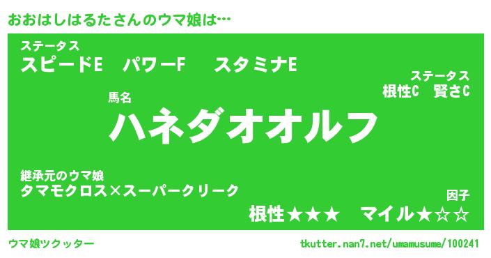 | 男性向けラノベタイトル風あだ名 | 『オオハシハルタアートオンライン』 |