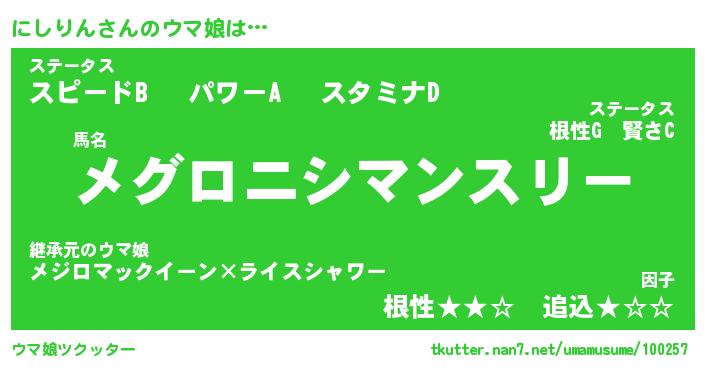 | 2回繰り返すあだ名 | 『にしにし』『ににしし』『ぐるぐる』 |
