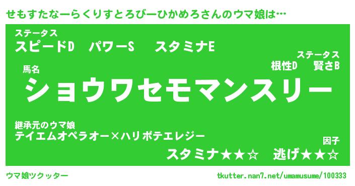 | 男性向けラノベタイトル風あだ名 | 『せもすたなーらくりすとろびーひかめろの憂鬱』 |