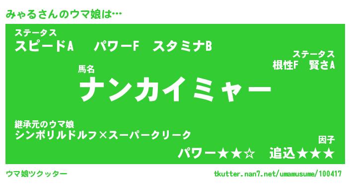 | ファンタジー風あだ名 | 『ミャフェル』『エターナルミャルー』 |