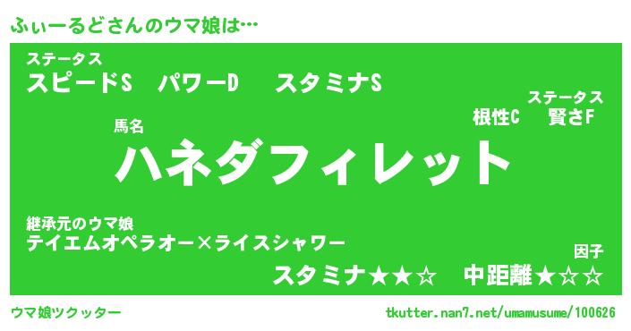| ヘコむあだ名 | 『ふぃにー』『牛乳』『ふぃ太郎』 |