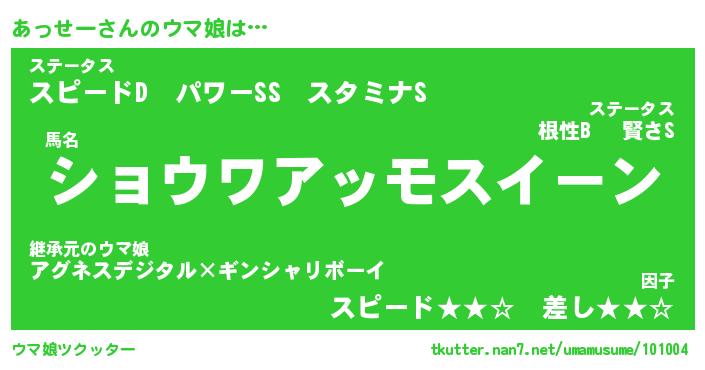 | 意味不明あだ名 | 『ペロリンあっせー』『永久保存あっせー』 |