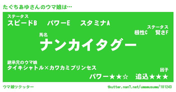 | ヘコむあだ名 | 『たぐにー』『豆乳』『たぐぷりん』 |