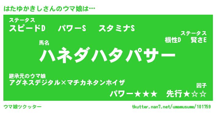 | 自動車の名前っぽいあだ名 | 『ハタティマ』『ハスラー』『ハンR』 |