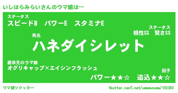 | 意味不明あだ名 | 『ペロリンいしはらみらい』 |