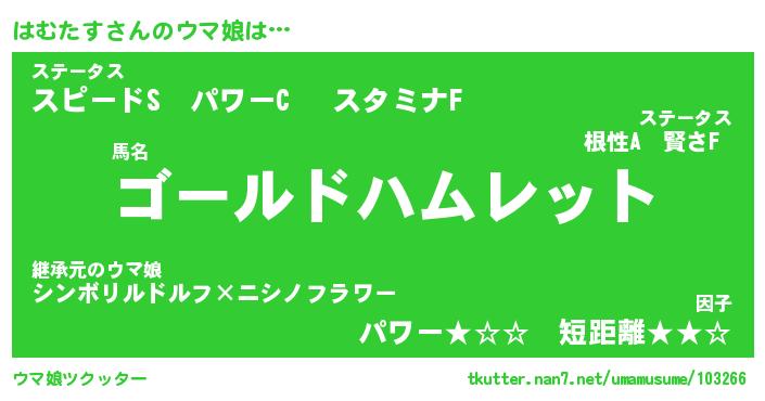 | ポケモン風あだ名 | 『ハムチュウ』『ハムタダネ』 |