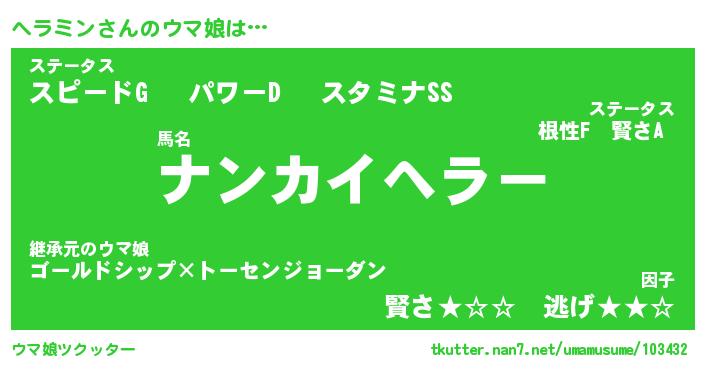| ファンタジー風あだ名 | 『ヘラフェル』『エターナルヘラミンー』 |