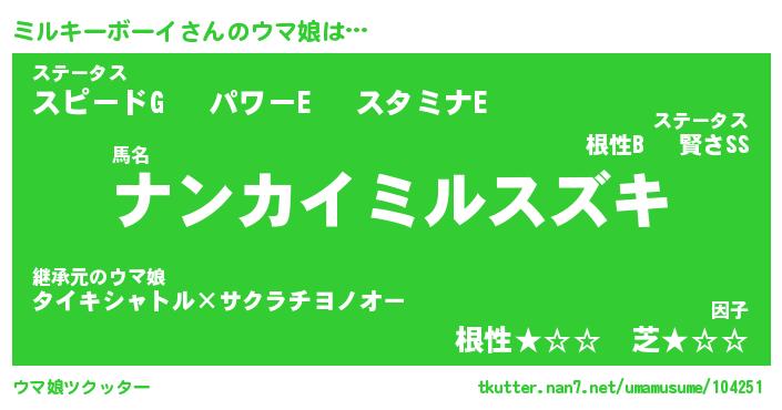 | ポケモン風あだ名 | 『ミルチュウ』『ミルキダネ』 |
