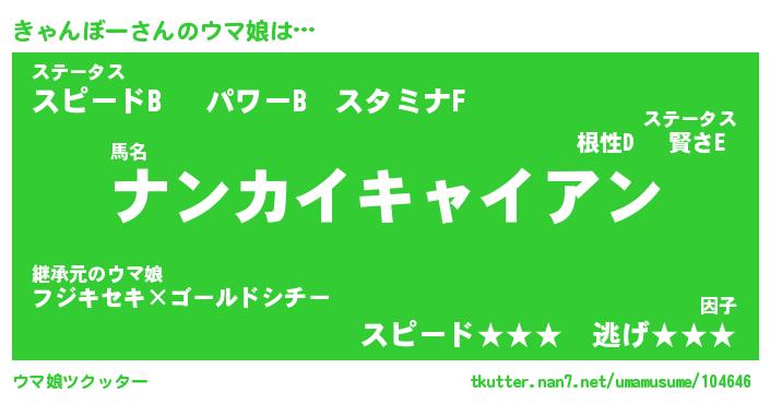 | 男性向けラノベタイトル風あだ名 | 『きゃんぼーの憂鬱』 |