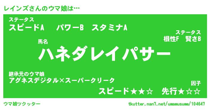 | 欧米人風あだ名 | 『マイケルレインズ』『ウサインレインズ』 |