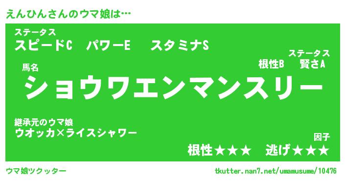 | 意味不明あだ名 | 『ペロリンえんひん』『永久保存えんひん』 |