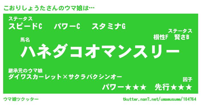 | 自動車の名前っぽいあだ名 | 『コオティマ』『コクア』『ヴィッコ』 |