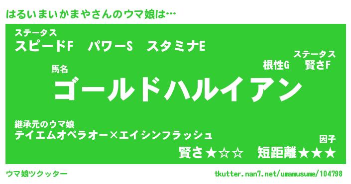 | ポケモン風あだ名 | 『ハルチュウ』『ハルイダネ』 |