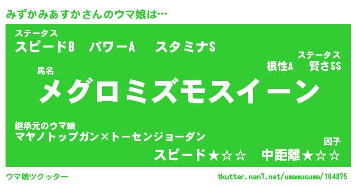 | ポケモン風あだ名 | 『ミズチュウ』『ミズカダネ』 |