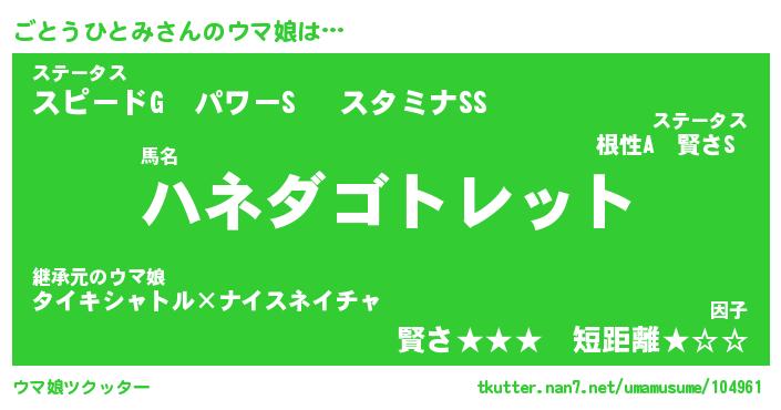 | 料理風あだ名 | 『ネギたっぷりごとうひとみの南蛮漬け』 |