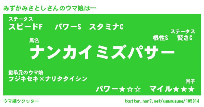 | ポケモン風あだ名 | 『ミズチュウ』『ミズカダネ』 |