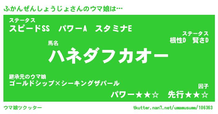 | ポケモン風あだ名 | 『フカチュウ』『フカンダネ』 |
