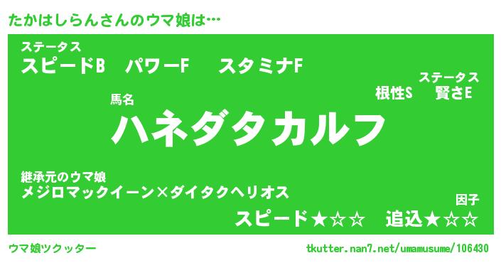 | ポケモン風あだ名 | 『タカチュウ』『タカハダネ』 |