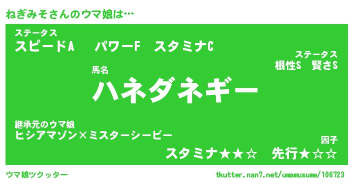 | 欧米人風あだ名 | 『マイケルねぎみそ』『ウサインねぎみそ』 |