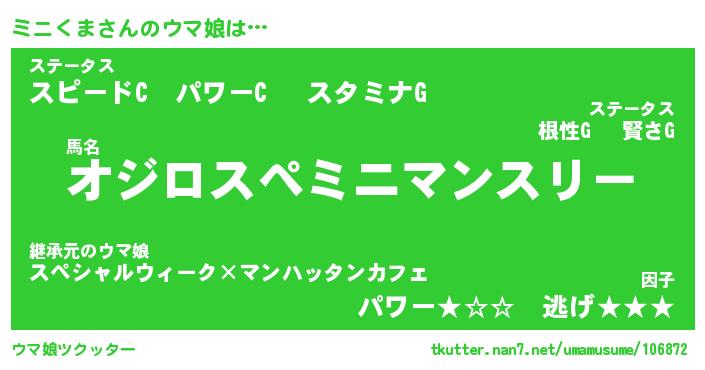 | ヒーロー風カッコイイあだ名 | 『スーパーミニクマ』『天弓騎士ミニ』 |