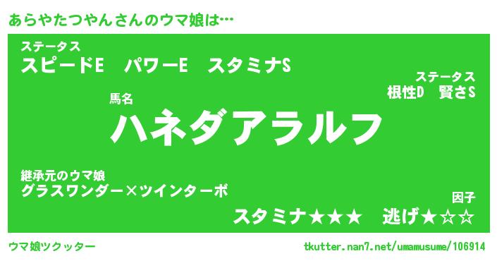 | ポケモン風あだ名 | 『アラチュウ』『アラヤダネ』 |