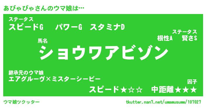 | 男性向けラノベタイトル風あだ名 | 『あびゃびゃの憂鬱』 |