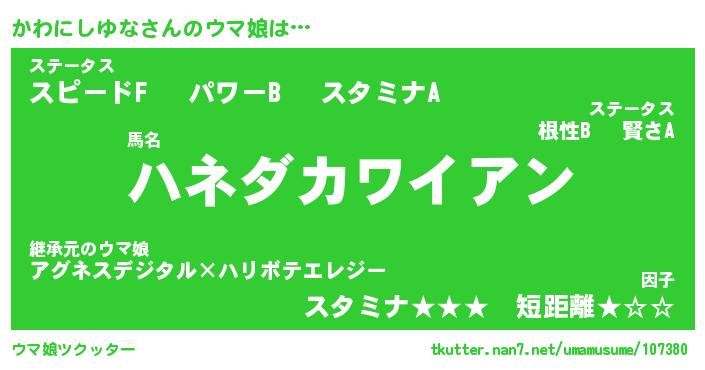 | 伝説のあだ名 | 『封印されし竜騎士かわにしゆな』 |