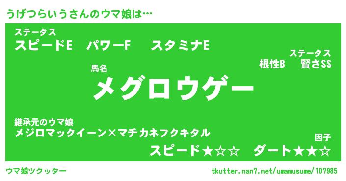 | ポケモン風あだ名 | 『ウゲチュウ』『ウゲツダネ』 |