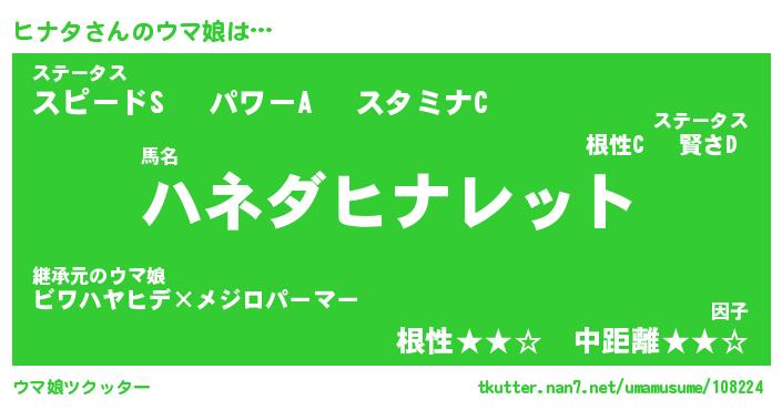 | 自動車の名前っぽいあだ名 | 『ヒナティマ』『ヒクア』『ヴィッヒ』 |