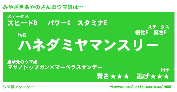 | ヘコむあだ名 | 『みやふぇ~』『牛乳』『みやっぺ』 |