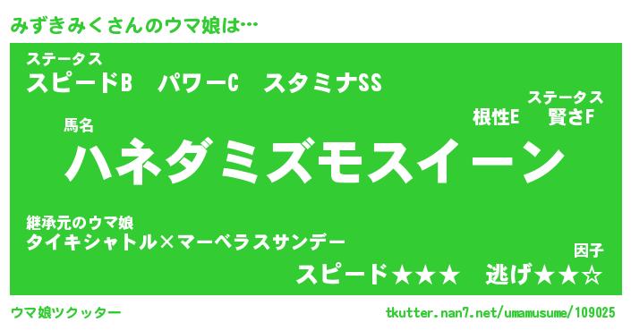 | ポケモン風あだ名 | 『ミズチュウ』『ミズキダネ』 |