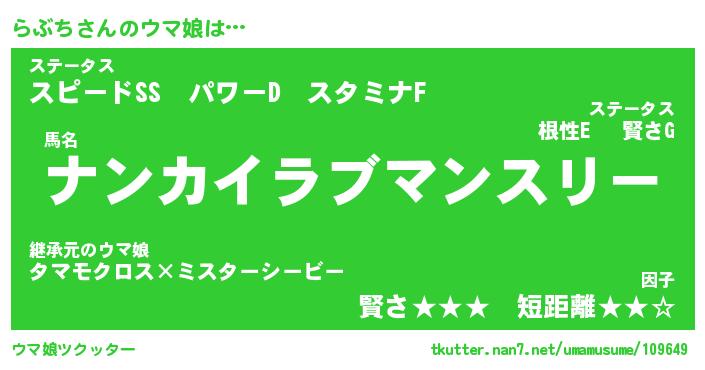 | ヘコむあだ名 | 『らぶっふぃ~』『なまこ酢』 |