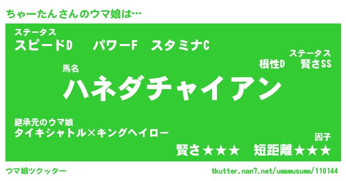 | ヒーロー風カッコイイあだ名 | 『スーパーチャータン』『幻影騎士チャ』 |