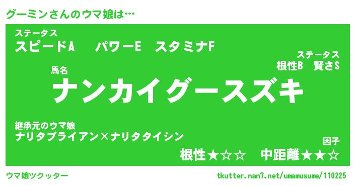 | 意味不明あだ名 | 『ペロリングーミン』『永久保存グーミン』 |