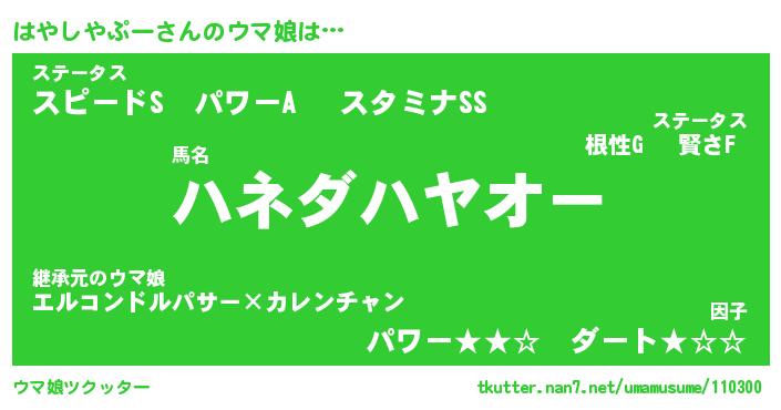 | 自動車の名前っぽいあだ名 | 『ハヤティマ』『ハクア』『デミハ』 |