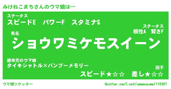 | ポケモン風あだ名 | 『ミケチュウ』『ミケネダネ』 |