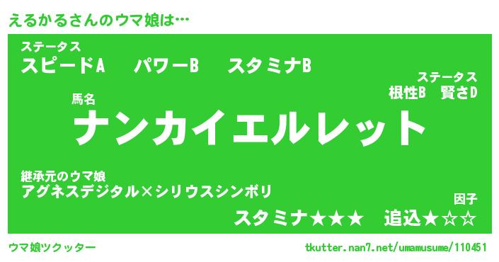 | 意味不明あだ名 | 『ペロリンえるかる』『永久保存えるかる』 |
