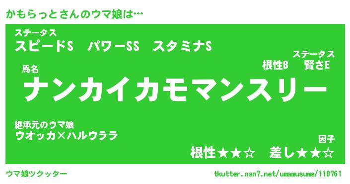 | 自動車の名前っぽいあだ名 | 『プリカモ』『カスラー』『デミカ』 |