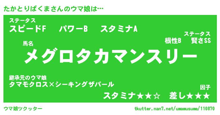| ヒーロー風カッコイイあだ名 | 『スーパータカトリバクマ』 |