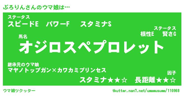 | 欧米人風あだ名 | 『マイケルぷろりん』『ウサインぷろりん』 |