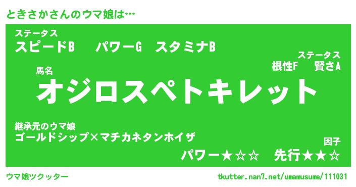 | 2回繰り返すあだ名 | 『ときとき』『とときき』『ぬれぬれ』 |