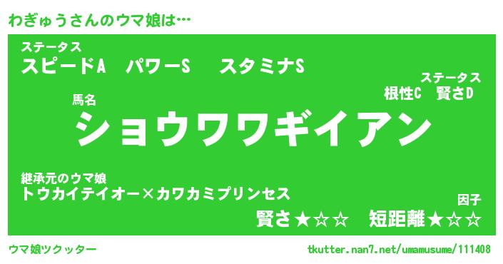| 欧米人風あだ名 | 『マイケルわぎゅう』『ウサインわぎゅう』 |