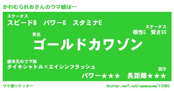 | ポケモン風あだ名 | 『カワチュウ』『カワムダネ』 |