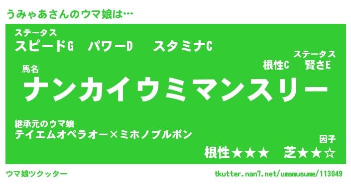 | ポケモン風あだ名 | 『ウミチュウ』『ウミャダネ』 |