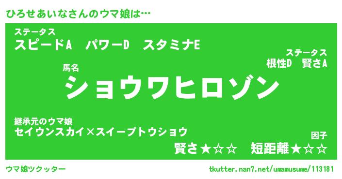 | 伝説のあだ名 | 『伝説のスナイパーひろせあいな』 |